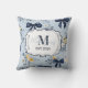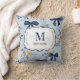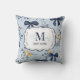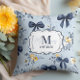 Coussin Custom Elegant Blue Bow Floral Monogram
