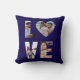Celebrate your love story with this customizable LOVE photo collage pillow, featuring a bold navy blue background and space for four personal photos. Each letter in the word "LOVE" is filled with your own images— with the “O” in the shape of a heart for a sweet and romantic touch.