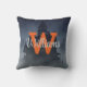 Add a spooky touch to your home decor during Halloween with this throw pillow featuring a misty haunted house, flying spooky bats, and personalized in the center with a big bold orange initial and your family name. A perfect accent for spooky season, this gothic-style cushion adds haunted charm to your couch, entryway, living room, or guest room throughout October and the fall.