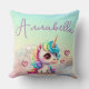 Cet oreiller de lancer magique et enchanteur comporte une jolie licorne de bébé avec des cheveux arc-en-ciel et de grands yeux. La douce petite licorne est assise sur un nuage de parties scintillant bleu et rose, et plusieurs coeurs de feuille rose flottent à côté d'elle. L'arrière - plan est un motif à gradient arc-en-ciel. Un exemple de nom est imprimé en haut, que vous pouvez personnaliser pour inclure votre propre nom ou texte personnalisé.