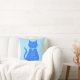 Ce coussin faire-part de naissance impressionnant présente une image art numérique d'un mignon chat bleu avec une queue bouclée. Ses yeux sont bleu pâle avec des élèves noirs. Il porte un arc rose dans ses cheveux et un collier bleu brillant autour du cou avec un jeton bleu dessus. Le design est parfait pour célébrer un bébé garçon. Il y a du texte personnalisé sur le chat pour que vous puissiez inclure le nom complet du bébé et la date de naissance et le poids à la naissance aussi.