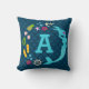 Coussin Cute Blue Tropical Sirène Monogramme Filles
