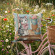 Coussin Cute Chat sur Porche avec Fleurs et Patchwork