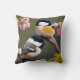 Coussin présentant de mignons poulets dans un cerisier en fleurs. Un coussin artistique à la belle vie ornithologique avec un thème de printemps éternel.