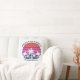Maison de plage sur mesure cool coussin avec un joli coucher de soleil rose derrière des palmiers tropicaux. Belle décoration personnalisée de maison île pour votre chalet à thème côtier.