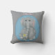 Cute gray elephant pillow. Elephant holding a yellow flower in its trunk, personalized name on front and elephant pattern on back.