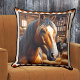Coussin avec une peinture d'un cheval mignon dans une écurie avec d'autres animaux. Beau pour une ferme ou un amoureux du cheval.