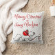 Oreiller de Noël | Cute 'Meowy Christmas' Kitties - Simple caricature en rouge et blanc - kitty en Santa hat dit ' Meowy Christmas' et Happy Mew Year sur le front un kitty jouant avec un paquet - un plaisir amoureux des chats. Ceci fait partie de la collection de Kitties de Noël Cute Meowy par WhimsicalArtwork™