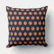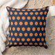 Bleu marine mignon avec coussin décorateur pois orange. Utilisez l'outil de conception de Zazzle pour modifier les couleurs des points de l'arrière - plan et du pois des deux côtés de votre coussin.
