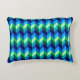 Un accent coussin avec un design motif et coloré de chevrons en vert citron, bleu royal turquoise, bleu océan et bleu ciel.