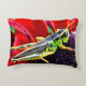 Cette coussin décorative à l'accent présente une sauterelle verte, jaune et noire brillante perchée au centre violet d'une fleur aux pétales rouges magnifiques.