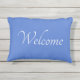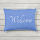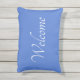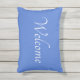 Coussin extérieur bleu vif. Éclairer ou meuble de patio avec une enseigne de bienvenue dans une coussin.
