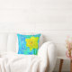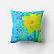 Cet oreiller lance un collage numérique composé de plusieurs couches de peintures, de textures et de scans. La jonquille ensoleillée "apparaît" sur le fond bleu.