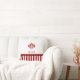 un classique coussin motif rayé rouge et blanc avec un élégant emblème damassé rouge. Personnalisez ce design preppy et élégant en ajoutant votre nom.