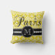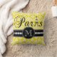 Ce carreau vintage chic jaune noir, blanc et lumineux de motif de damassé avec a personnalisé votre initiale de monogramme, le mot "Paris" avec Tour Eiffel et une ligne des diamants blancs imprimés sur une bande noire semblera extraordinaire dans votre chambre à coucher ou salon comme coussin d'accent. La galerie Gifts© Elke Clarke de monogramme conçoit le ©