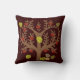 Le coussin d'automne Apple Tree présente un beau design d'un pommier plein de pommes rouges avec des feuilles d'automne tombant sur un arrière - plan marron.