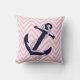 Coussin Dark Nautical Blue Anchor Pink Zigzag Chevron