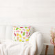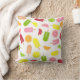 Un coussin comportant comportant l'illustration de la chaux, de l'orange, du citron, des pamplemousses, et des tranches de citron de rose et assortissant la glace rose, rouge, verte, orange, et jaune saute. Le bord opposé est vert.