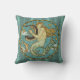 L'image pour ce coussin est un collage numérique comportant le détail de sirène du plancher de mosaïque glorieux d'or par la grue de Walter, créée en 1881. Ce détail circulaire de mosaïque est placé sur une image d'un détail d'un mur de cascade de mosaïque d'échelle de sirène de turquoise.