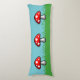 Un pré d'été d'art de pixel. L'herbe verte enjambe le coussin avec un ciel bleu ci-dessus. Trois champignons rouges d'agaric de mouche se développent dans le pré.