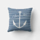 Coussin de décoration nautique en pépinière avec ancre de bateau. Conception du thème de voile bleu marine avec motif à rayures. Idée cadeau accessoire mignonne pour la salle de bébé nautique ou chambre d'enfants. Impression d'ancre maritime avec monogramme ou nom personnalisé. Combinez-le avec votre tissu de literie nautique.