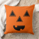 Cet oreiller festif à lancer d'Halloween est présenté en imprimé citrouille noir et orange. Customisez ce coussin ou achetez tel quel.
