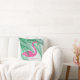 Ce coussin ludique et tropical est décoré d'un flamand rose vif et de feuilles de palmiers sur un arrière - plan bleu glacé, menthe, ce qui en fait l'accessoire parfait pour l'été girly pour la chambre, le cottage, le patio, le pont ou la piscine. Ce coussin est facile à customiser avec son nom, ses initiales ou tout autre dicton, sur le devant et le dos.