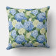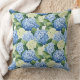 Cet accent coussin est montré dans une belle impression florale hydrangée bleu multicolore. Customisez cet objet ou achetez tel quel. Image sous licence