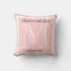 Coussin monogrammé rose, noir et blanc personnalisé avec nom de mariée et de mariée et date de mariage en écriture décorative.arrière - plan de couleur solide. Fait un grand cadeau pour les jeunes mariés. Élégant, tendance, accessoire pour votre chambre, chaise préférée, ou toute chambre dans votre maison familiale. Customisez avec vos noms, date initiale monogramme et date mariage. Disponible dans les années 100 de couleurs monogramme, lettres, initiales, élégant, monogrammed, mariage, noms, "mariée et marié", mariage, chic, "mariage keepsar", décoration de maison, tendance, blanc, gris, coussin