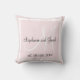 Coussin monogrammé rose, noir et blanc personnalisé avec nom de mariée et de mariée et date de mariage en écriture décorative.arrière - plan de couleur solide. Fait un grand cadeau pour les jeunes mariés. Élégant, tendance, accessoire pour votre chambre, chaise préférée, ou toute chambre dans votre maison familiale. Customisez avec vos noms, date initiale monogramme et date mariage. Disponible dans les années 100 de couleurs monogramme, lettres, initiales, élégant, monogrammed, mariage, noms, "mariée et marié", mariage, chic, "mariage keepsar", décoration de maison, tendance, blanc, gris, coussin