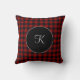 Coussin de jet à monogramme simple rouge et noir à carreaux de buffle
