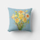 Coussin de coussin de jonquilles de fleurs de ressort d'aquarelle par l'aquarelle Cheng artiest Jing. Bleu d'arrière - plan - la couleur peut être texte changé au fond : Le jour de mère heureux - le texte peut être changé