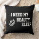 Coussin en noir/rose avec un litho imprimé d'une couronne de concours et dit I Need My Beauty Sleep. Customisez cet objet ou achetez-le tel quel.