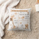 Coussin décoratif de charme avec des images d'animaux de la jungle en blanc, tonalités pêche, qui peut être personnalisé avec les détails de la naissance d'un enfant. mignon, animaux, jungle, pêche, pour une fille, girafe, tigre, pub, personnaliser, oiseau, sauver la date,