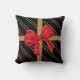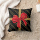 Coussin moderne de vacances ; ressemble à un cadeau de Noël enveloppé. Coussin noir avec les filets minces d'or, enveloppés avec un ruban d'or et un rouge/arc d'or. Une addition élégante très moderne à votre décor de vacances.
