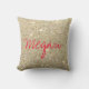 Coussin de parties scintillantes d'or avec le nom ou le texte personnalisable.
