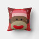 Un grand singe à chaussettes avec un casquette rose contre un arrière - plan rouge étoilé sur un coussin à chaussettes qu'elle est sûre d'aimer !