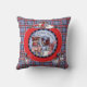 Rouge, blanc et bleu Raggedy Treasures coussin avec plusieurs garçon et fille ragdolls et un arrière - plan plaid.