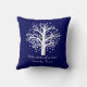 Coussin de souvenir de mariage, arbre généalogique ; Le blanc sur la marine, avec la silhouette de l'arbre blanc sur un coussin de bleu marine, ajoutent les noms des couples et la date de mariage sur l'avant du coussin ; De retour du coussin dit "le début d'un nouvel arbre généalogique" (ou éditez le texte car vous voudriez)