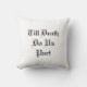 Ce coussin décoratif noir et blanc est orné de la devise 'Jusqu'à la mort', ainsi que des noms et date de mariage du couple heureux.