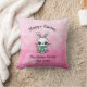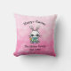 Un Coussin de Pâques personnalisé avec un mignon lapin, rose et violet.