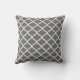 Coussin décoratif élégant et sophistiqué dans le motif marocain gris-foncé et blanc de trellis de quatrefoil.