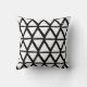 Coussin décoratif élégant et sophistiqué dans le motif géométrique noir et blanc classique de trellis de triangles.