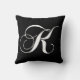 Coussin blanc noir du monogramme K. Cette police élégante de remous transforme votre initiale de monogramme en coussin décoré d'un monogramme élégant de concepteur. Grand pour votre chambre à coucher, chaise préférée, comme décor d'amusement dans votre chambre familiale ou addition décorative formelle à votre salon. Personnaliser avec votre couleur d'arrière - plan. Pour d'autres lettres de l'alphabet entrez en contact avec svp MONOGRAMGALLERY. Elke Clarke©