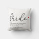 Coussin Définition de la mariée, texte de douche nuptiale