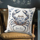 Coussin Delft Blue Floral Crab Coastère Rustic Beach House