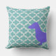 Coussin unique avec la moitié de la silhouette d'un dachshund violet sur l'avant et l'autre moitié sur l'arrière.