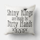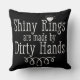 Faisant de jolis anneaux, les bracelets et d'autres bijoux est joli sale travail avant qu'il devienne tout gentil et brillant. Grand cadeau pour un metalsmith, l'orfèvre, l'orfèvre ou tout qui obtiennent les mains sales de faire des choses assez brillantes. Ce coussin montre le texte dans le noir d'un côté et renversé (le texte blanc sur le noir) de l'autre côté.