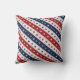 Coussin en extérieur rouge, blanc et bleu, avec étoiles en diagonale et rayures. Idéal pour les fêtes 4 juillet, les patios patriotiques ou les fêtes d'été.