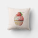 Coussin avec une illustration délicieuse d'un cupcake à l'allure délicieuse. Crème blanche et une grande fraise ornent cette délicieuse douceur délicieuse.